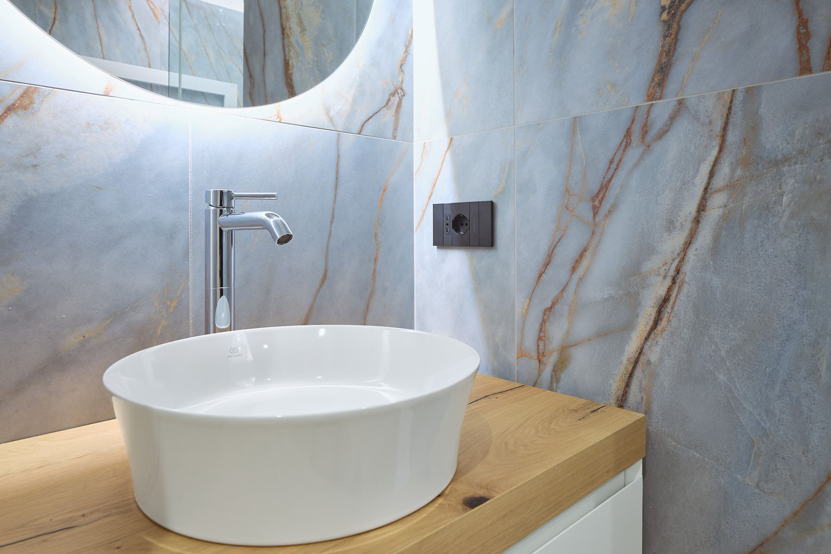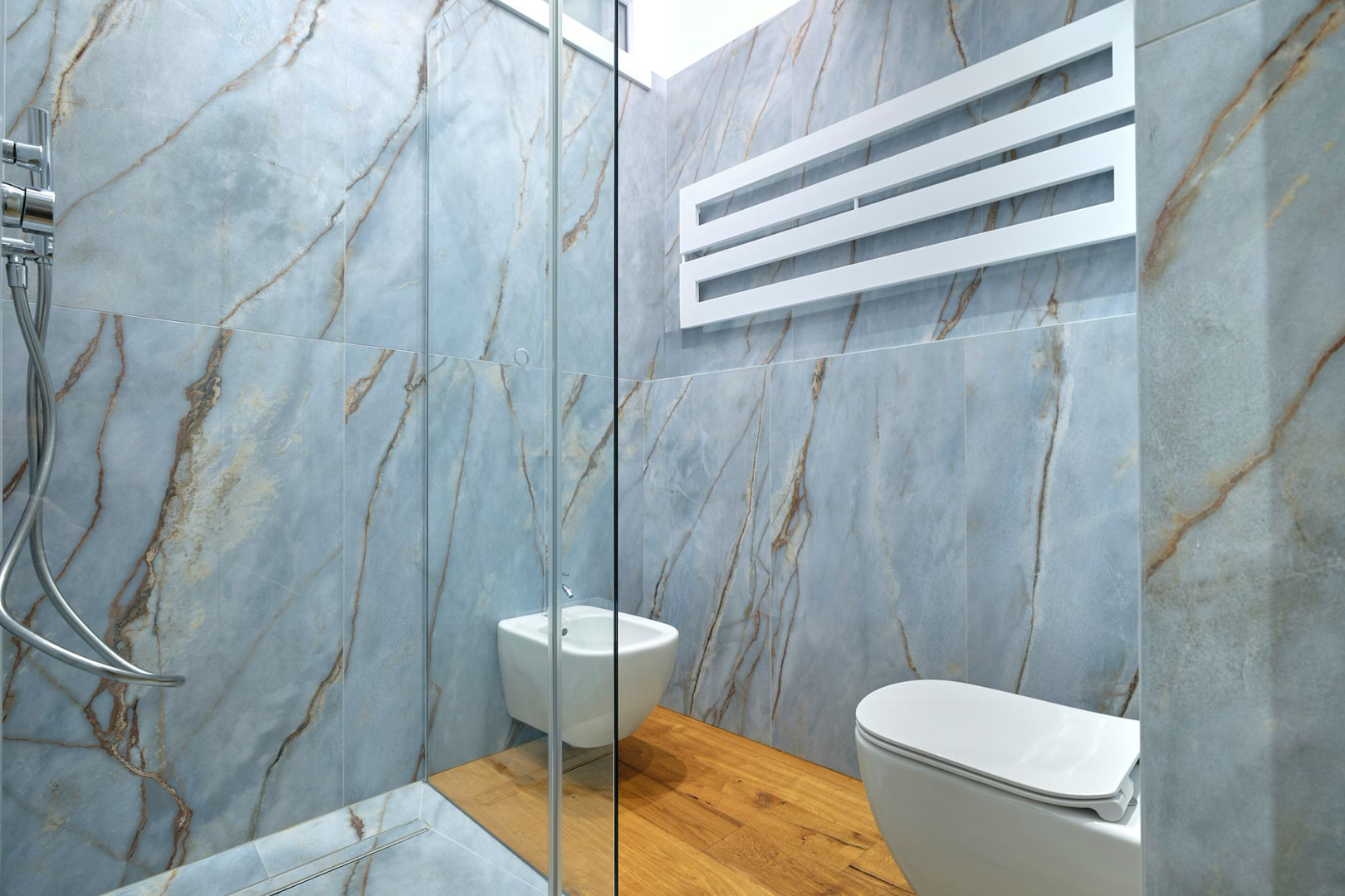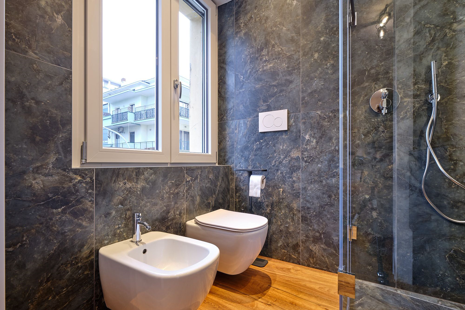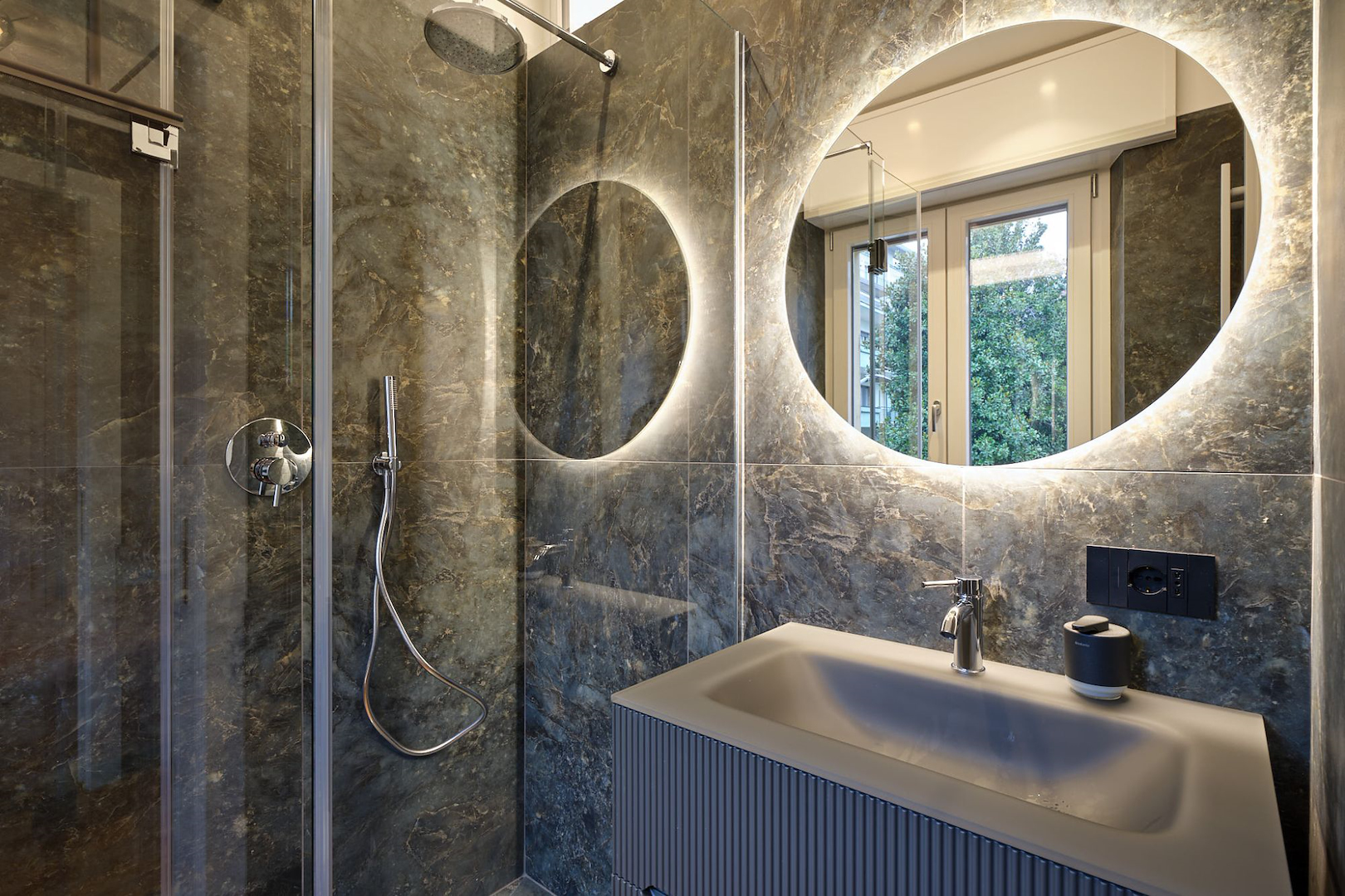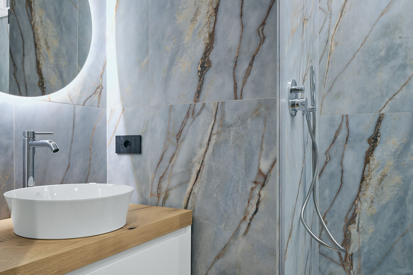 Il concept progettuale ha puntato su un equilibrio tra innovazione e calore. Le superfici effetto pietra dei bagni si intrecciano con le calde tonalità del legno, dando vita a un ambiente dove ogni dettaglio racconta una scelta consapevole. Una scelta studiata assieme in showroom e realizzata dal nostro ufficio tecnico interno per dar vita a ogni dettaglio su misura.