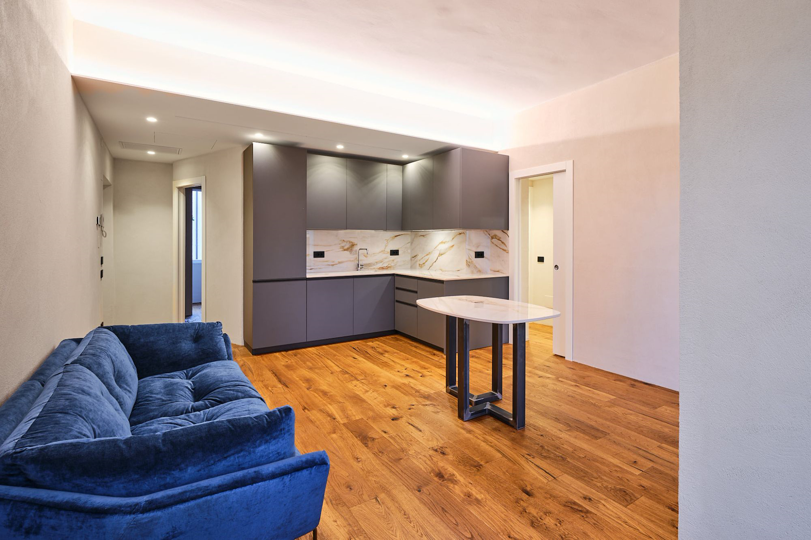 Il risultato? Una casa elegante, tecnologicamente avanzata, ma anche intima e accogliente. Un piccolo rifugio urbano, pensato per accogliere, rigenerare e far sentire sempre a casa, anche a distanza.