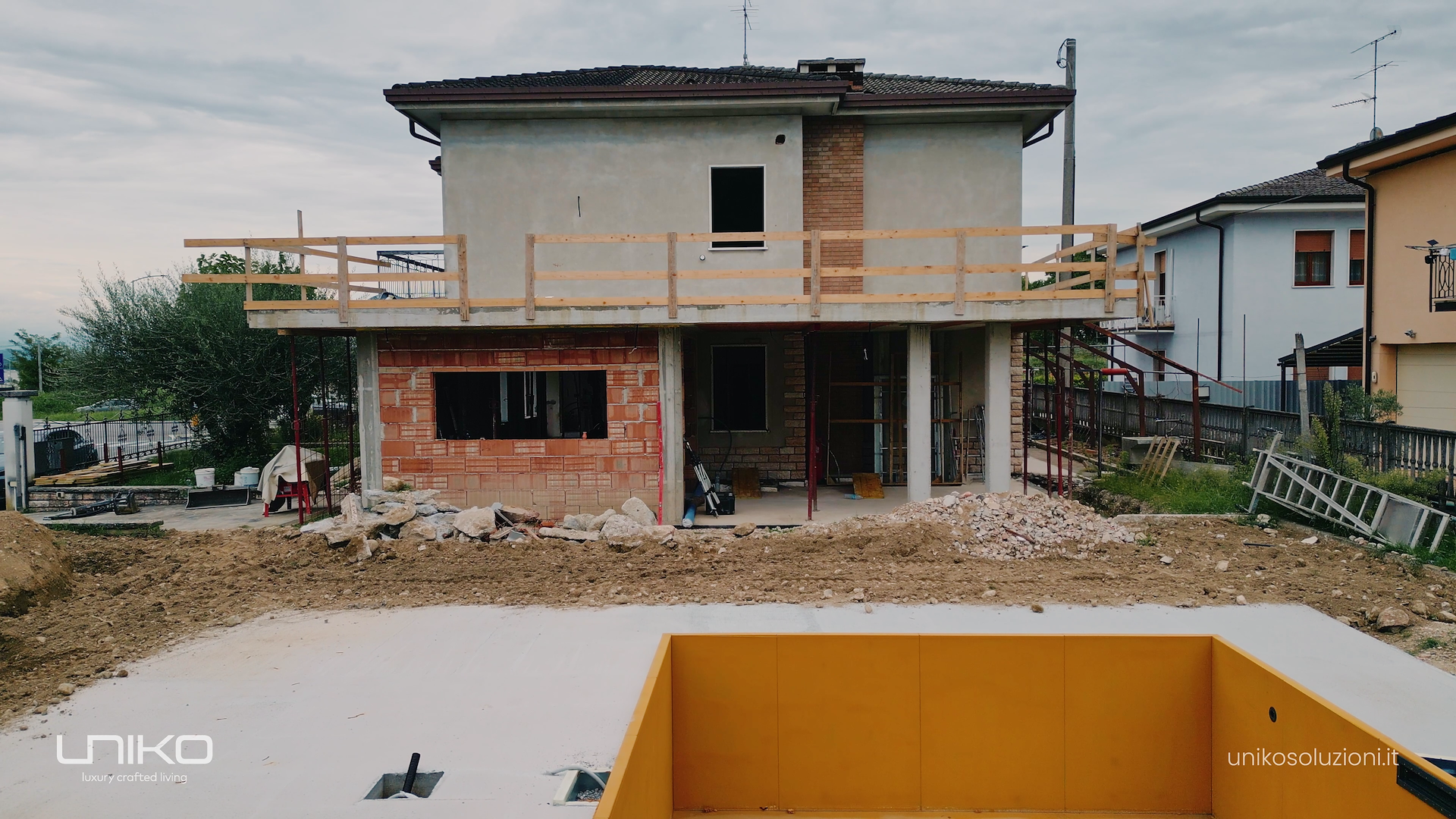 L'intervento di ampliamento ha interessato la zona cucina dell'abitazione privata, completata da un nuovo portico.