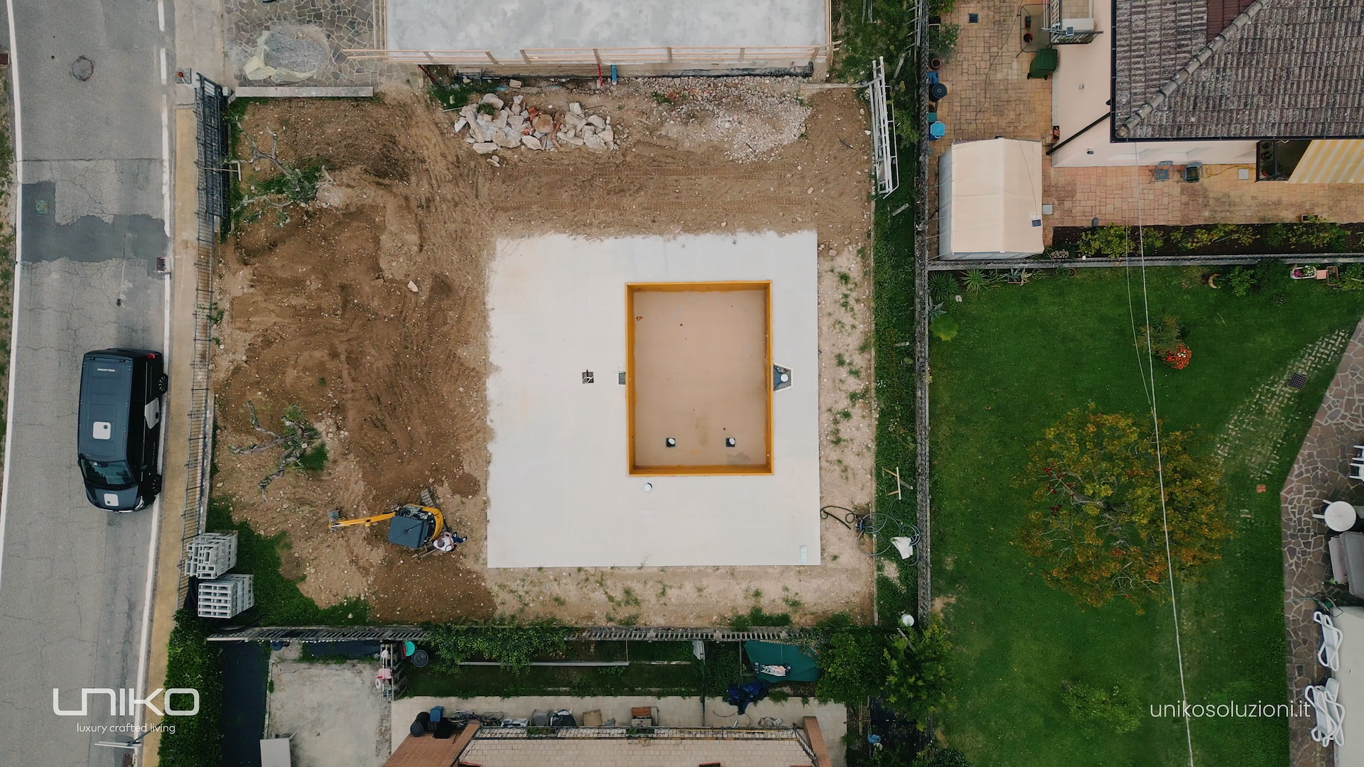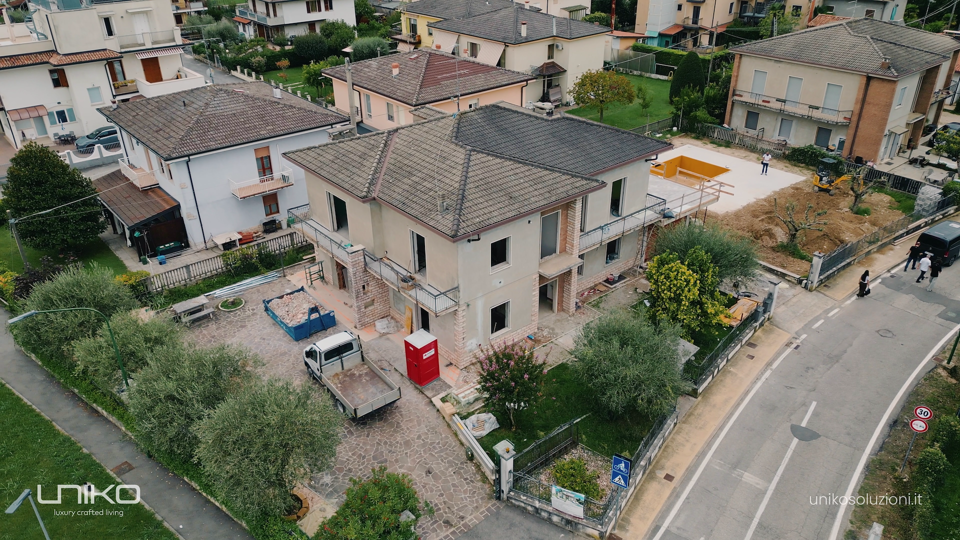 L'area esterna ristrutturata, seppur leggermente ridotta dall'ampliamento, mantiene dimensioni generose e include una nuova piscina ad uso condiviso tra ospiti e proprietà.